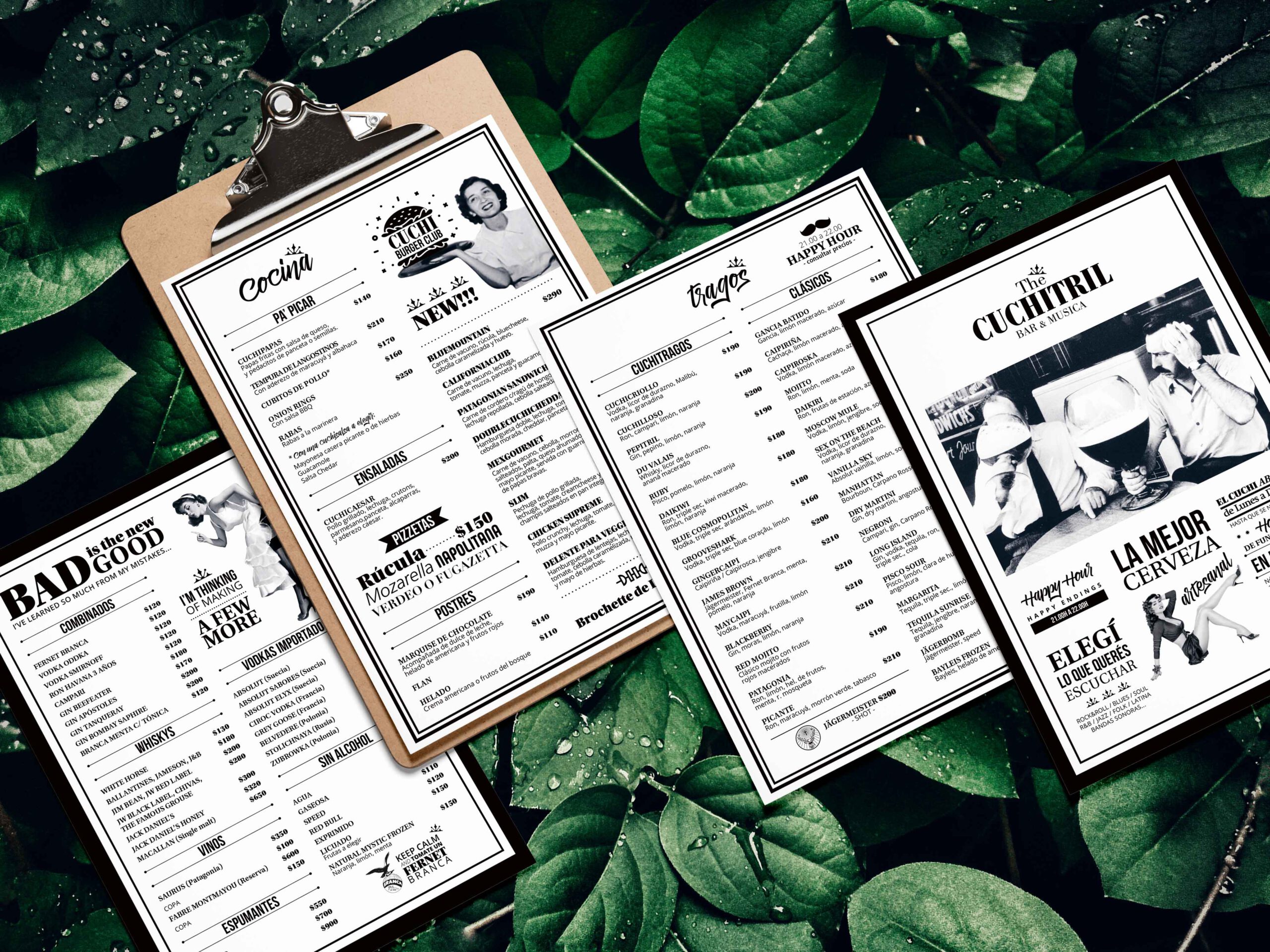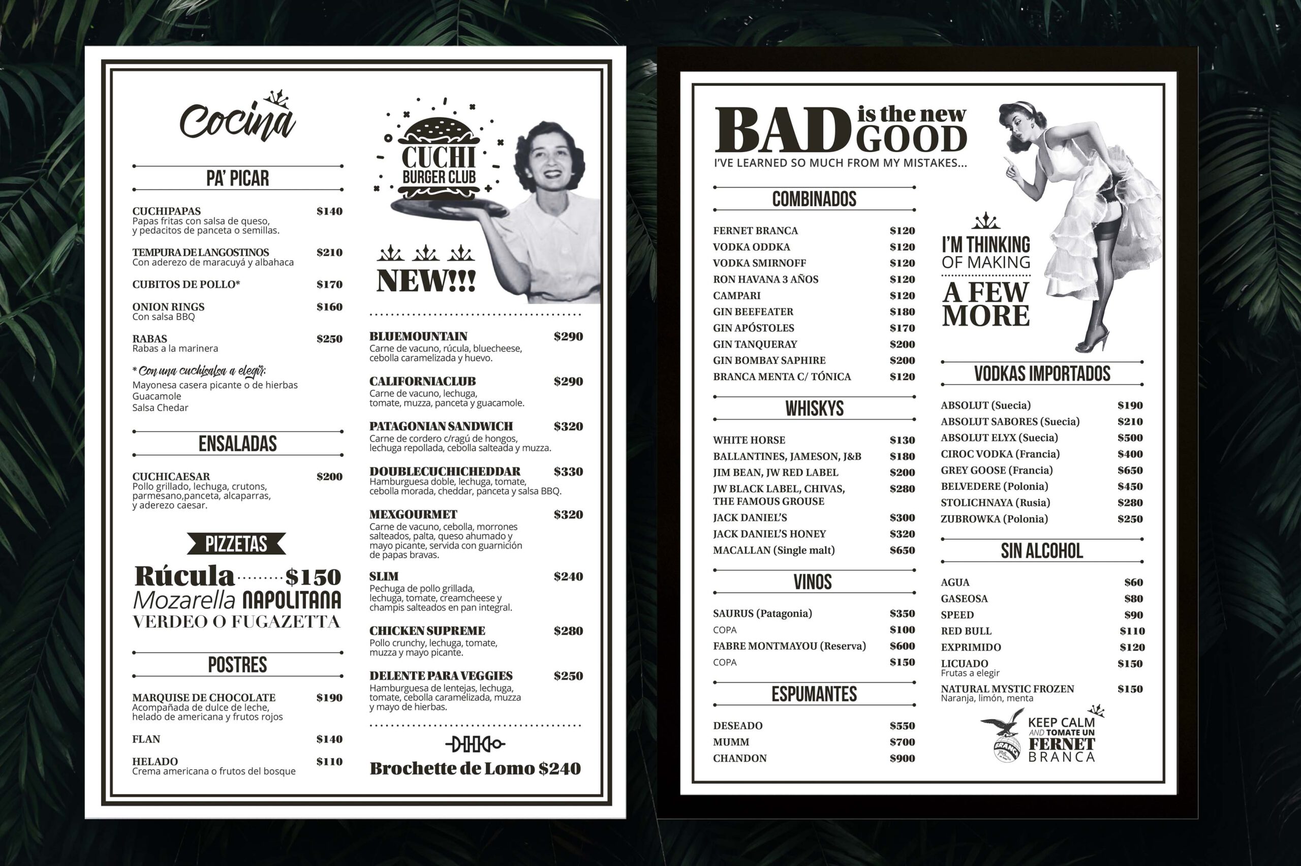 I designed a food menu according to a vintage visual style. It’s the most remarkable characteristic used between the decorative elements and the interior design in general.