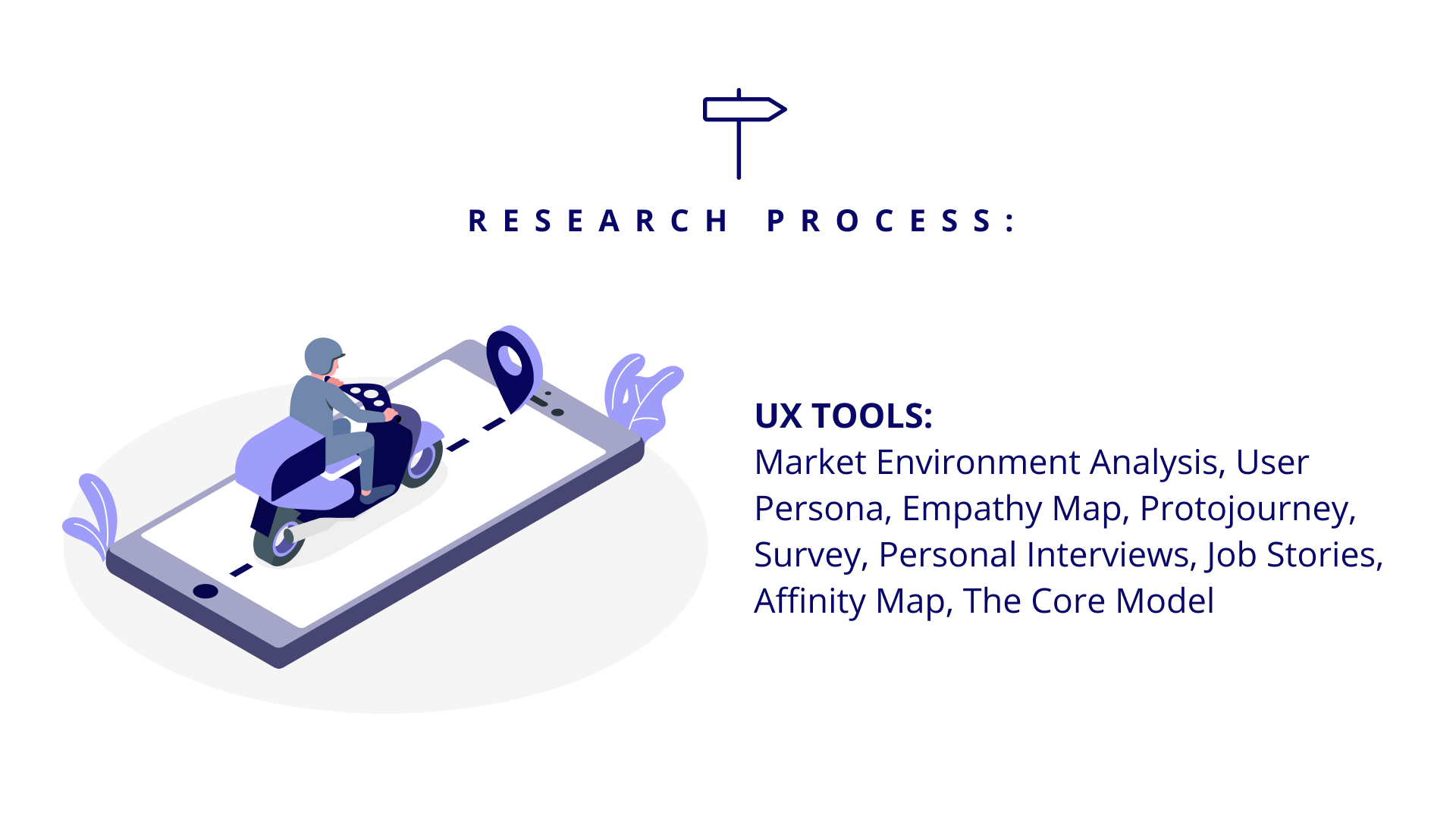 UX Tools: Market Environment Analysis, User Persona, Empathy Map, Proto Journey, The Lean Survey Canvas, Survey (Google Form), Personal Interviews, Job Stories, Affinity Map, Functionalities list, The Core Model